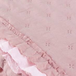 Charme dos Babadinhos: O grande diferencial desta colcha são seus babadinhos delicados, que contornam a peça e os porta travesseiros, adicionando um charme único e um visual encantador à cama.