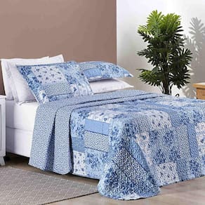 Colcha Ayla Casal Padrão Tecido Dupla Face Microfibra 03 Peças - Azul Sereno - Única