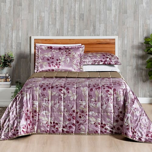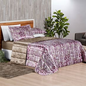 Tecido de seda: Maciez, brilho e toque suave para noites mais relaxantes. Dupla face: Versatilidade para combinar com diferentes estilos de decoração. Matelado com costuras: Design elegante e durabilidade. Medidas generosas: 2,70m x 2,60m para camas queen. Fácil de cuidar: Lavável e passável.
