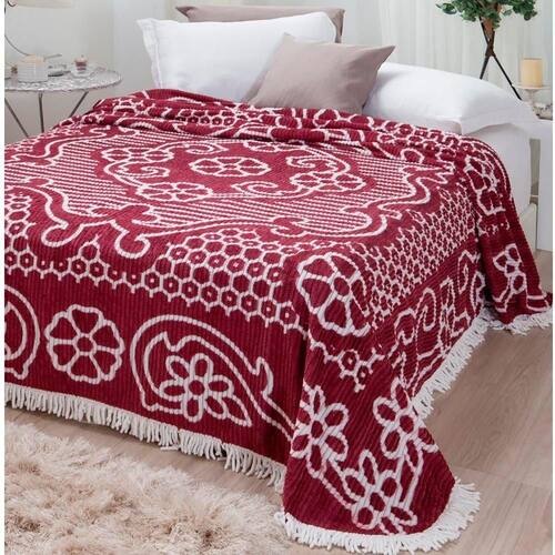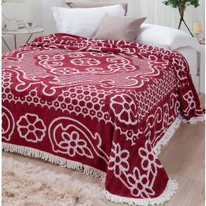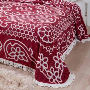 Colcha Casal Chenille Canelada Bruna Vinho/Branco Aristocrata Jolitex