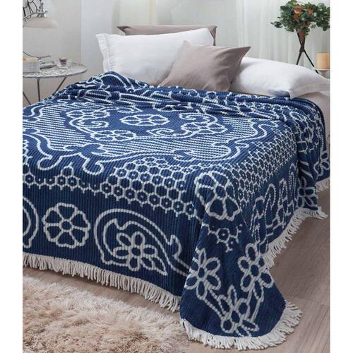 01 Colcha Casal Chenille Azul 2,20 x 2,40m com Franja