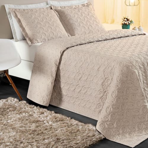 Colcha Casal King Size Agata Bordada 200 Fios Super Elegante Cor: Bege Colcha Casal King Size Agata Bordada 200 Fios Super Elegante