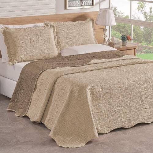 Colcha casal padrão bella dupla face 03 peças - avelã Kit cobre leito colcha bella matelada estampa vibrante renove o visual do seu quarto com a elegância e o charme da colcha bella matelada cores vibrantes