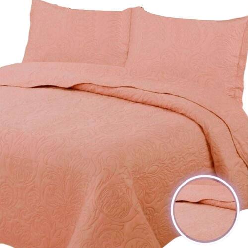 Colcha Casal Padrão Bella Dupla Face 03 Peças Salmão 100% Poliéster
