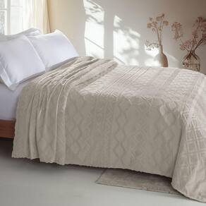 Colcha Chenille Jolitex Solteiro Memories Toque Algodão Bege