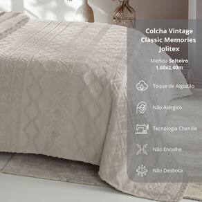 Descubra o prazer de vestir sua cama com a elegância e qualidade da coleção Vintage Classic da Jolitex. Com a tecnologia Chenille e uma paleta de cores sofisticada em bege, branco, cinza, marrom, verde e azul, cada peça traz um toque refinado para a sua decoração. Desenvolvida para ser prática e duradoura, não amassa, não encolhe e mantém sua beleza impecável, mesmo após muitas lavagens.