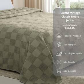 Descubra o prazer de vestir sua cama com a elegância e qualidade da coleção Vintage Classic da Jolitex. Com a tecnologia Chenille e uma paleta de cores sofisticada em bege, branco, cinza, marrom, verde e azul, cada peça traz um toque refinado para a sua decoração. Desenvolvida para ser prática e duradoura, não amassa, não encolhe e mantém sua beleza impecável, mesmo após muitas lavagens.