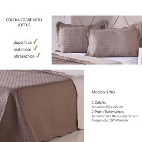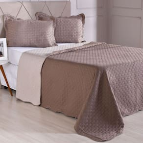 Colcha com porta travesseiros. A Linha Lotus de Cobre Leito possui lindos desenhos que sao desenvolvidos com tecnologia ultrassonica e combinados com cores modernas e versateis que se encaixam perfeitamente no ambiente. A Colcha Cobre Leito tem toque aveludado matelasse e enchimento de 150g/m². Muito conforto e elgancia na sua cama.