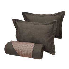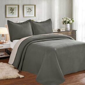 Colcha Cobre Leito Casal Poliéster Dupla Face 3pcs Cinza com Bege