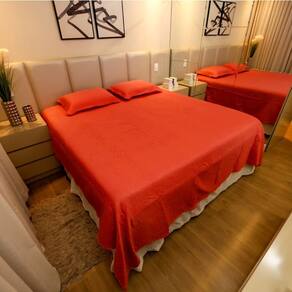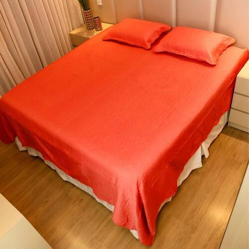 01 Colcha Cobre Leito Queen Matelado Liso Salmão.