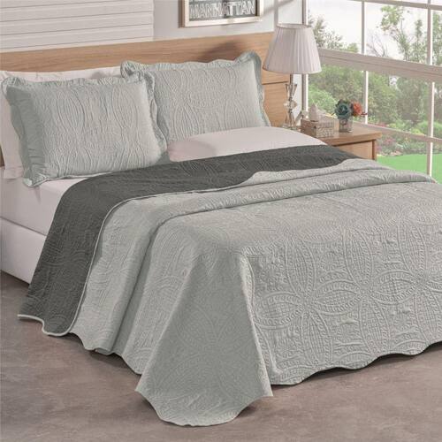Colcha King Bella Dupla Face 03 Peças - Cinza