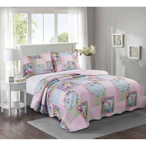 Colcha Patchwork 2 Peças Com Porta Travesseiro em Cores Lindas e Vibrantes Para Alegrar o Seu Quarto.