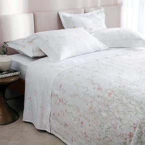 Colcha Queen 180 fios 3 Peças Percalle Verbena Buddemeyer O Kit Cobre-Leito Colcha Buddemeyer Percalle Verbena Dupla Face 100% Algodão Fio Penteado 180 Fios é um convite ao aconchego com charme natural. Sua estampa floral aquarelada traz um cenário delicado de folhas e flores silvestres, em tons suaves como lavanda, verde-claro e amarelo pálido, sobre um fundo branco sereno. O toque romântico se completa com pequenos elementos em tom lilás e detalhes como borboletas discretas, que fazem deste kit uma peça encantadora para transformar o quarto num refúgio calmo e leve.