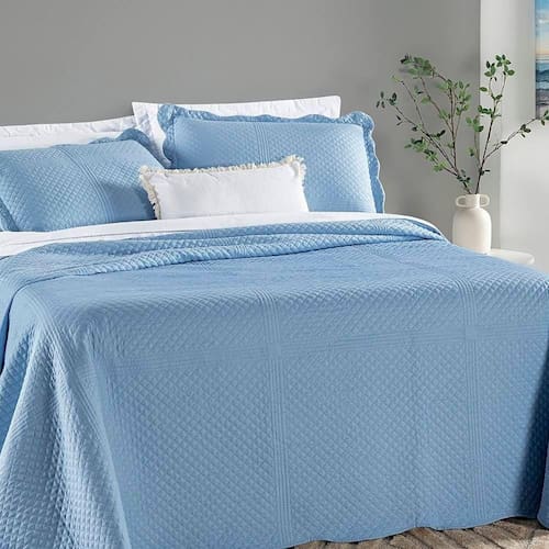 Colcha Queen Chess Dupla Face Micropercal 200 Fios 3 Peças - Azul Astral