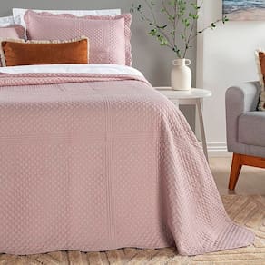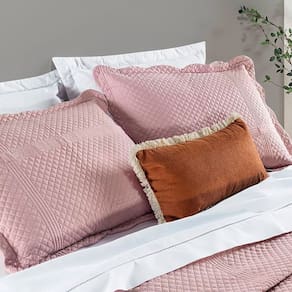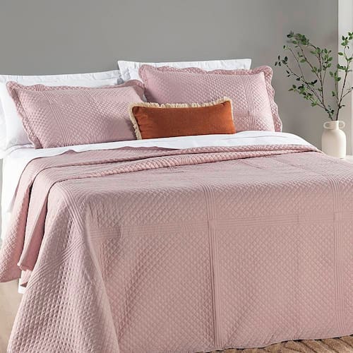 Colcha Queen Chess Dupla Face Micropercal 200 Fios 3 Peças - Rosa Suave