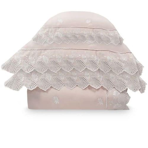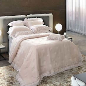 Produzida em tecido matelado 100% algodão, 300 fios e enchimento 100 poliéster. O modelo é caracterizado pelos bordados que nos remetem ao requinte e sofisticação. Perfeita para deixar a sua cama muito mais bonita e composta. O kit é composto por porta-travesseiros, almofada e colcha bordada. Foto meramente ilustrativa. Contém: 1 colcha 240x260cm 2 porta-travesseiros 50x70cm 1 almofada 35x45cm Dicas de conservação: - Siga as instruções de lavagem e conservação dispostas na etiqueta ou embalagem do produto.