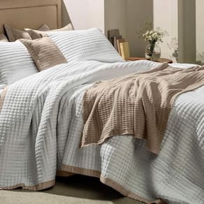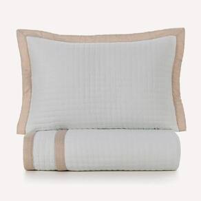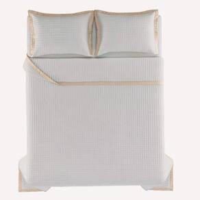 A colcha Amaro, com porta-travesseiros em tecido micro matelassado branco, combina simplicidade e elegância. O acabamento das abas e bordas é contrastante em tom de bege e tem um efeito de entrelaçado rústico, adicionando ainda mais sofisticação ao conjunto. A colcha Amaro é prática, leve e perfeita para composições minimalistas e modernas. Além de proporcionar conforto térmico, ela decora e complementa a cama posta.