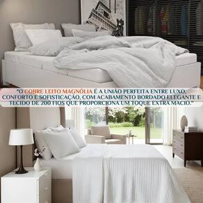 Colcha Queen Magnólia 200 Fio Bordada Luxo Conforto E Qualidade Cor: BRANCA Mais que uma colcha, um toque de requinte para sua cama A Colcha Queen Magnólia Bordada Luxo 200 Fios une maciez, elegância e qualidade em cada detalhe.