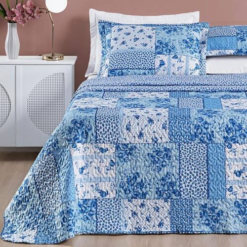 Colcha Queen Size Babado Florença Bordado Dupla Face 200 Fios BOUTI Cor: AZUL Deixe seu Quarto um Luxo Colcha Queen Size Babado Florença Bordado Dupla Face 200 Fios