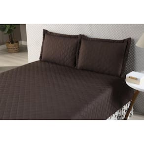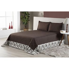 Colcha vitória casal queen 3 peçasContém:01 cobre leito 2,50m x 2,20m.02 portas travesseiro 0,70cm x 0,50cm.Composição:Tecido 100% poliéster.Forro tnt 40 gramas.Composição do tecido estampado:Tecido jacqard 100% poliésterObservação: apenas a parte estampada é tecido jacquardÓtimo custo e ótima qualidade de mão de obra. Marca: Brucebaby Bordados