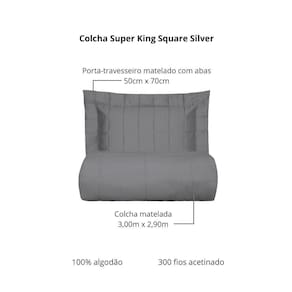 Colcha super king 300 fios kacyumara square 03 peças silver