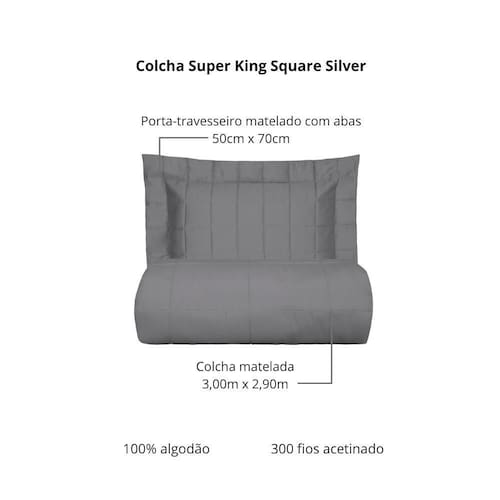 Colcha Super King 300 Fios Kacyumara Square 03 Peças Silver