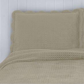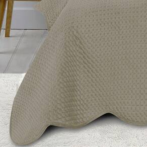 Colcha Velvet Veludo Queen Size Porta Travesseiros Bege 3 Peças