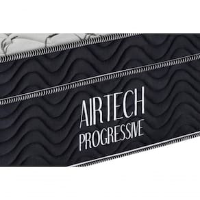 Colchão Airtech Progressive possui em sua estrura o avançado molejo Nanolastic que tem a menor molécula de carbono do mercado, proporcionando um perfeito suporte para a coluna e conforto para qualquer biótipo, possui Ortopillow e em sua camada de conforto espuma D26 Pró Aditivada de Alta Performance, bordado em matelassê e placa EPS. Seu tampo é em malha de alta qualidade e lateral em Camurça, apresentando um toque refinado ao colchão. Possui a tecnologia No Turn, que dispensa a necessidade de virar o colchão. O Airtech Progressive recebe tratamento e , ajudando a reduzir os problemas respiratórios. Um excelente colchão para suas noites.