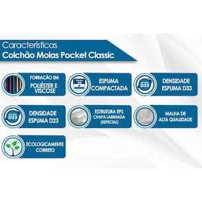 Colchão Anjos de Molas Pocket Classic - Colchão Casal - 1,38x1,88x0,26 - Sem Cama Box