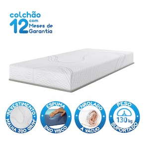 suporte para até 130 kg. A espuma viscoelástica também contribui para o controle da temperatura corporal, mantendo frescor no verão e aconchego no inverno.
