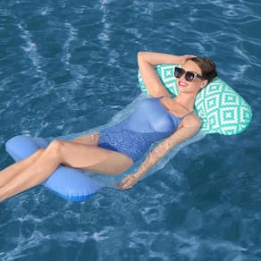O Colchão D'água Hammock tem textura suave e macia perfeito para um dia na piscina. O material apresenta um revestimento duradouro. Você pode usá-lo como um colchão plano, uma cadeira de piscina, ou um assento de sela.