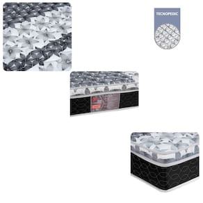 Características: Acabamento bordado contínuo e debrum 40 mm Base inferior forro TNT 100 g/m² e 1 lâmina D20 -3 cm- Bordas perimetrais em espuma resistente Biotipos -por pessoa- até 110Kg Enchimento interno,1 lâmina D26 ou AG=65 -2 cm- Espuma superior 2 lâminas D20 -2 cm cada- Estabilidade armação com pele de espuma e união por espiral de aço Face única -One Face- não precisa virar Molas no Sistema Bonnel Tecnopedic em aço 2,20 mm Pillow Top One Face Reforço borda perimetral em espuma AG=65 com 10 cm Selo Inmetro 007463/2016 Tecido forro TNT 100 polipropileno Tecido lateral e tampo 100 poliéster