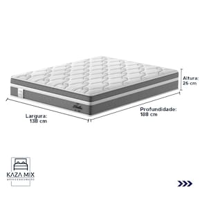 Dimensões: 138x188x26cm; (largura x comprimento x altura)