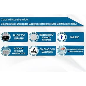 Colchão Casal c/ Vibro Massagem Molas Ensacadas Liverpoll Ultra Gel New Euro Pillow (138x188x36) - Probel Marca: Probel
