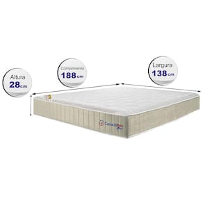 FICHA TÉCNICA DO PRODUTO Tamanho CASAL 138cm x 188cm SOBRE O COLCHÃO Altura 28 cm Espuma Estrutural D26+Eps Molas pocket (molas Ensacadas individualmente) Revestimento do Tampo em Malha importada Revestimento da Faixa lateral em Suede Revestimento do Fundo com Forro Antiderrapante