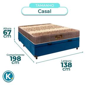 Modelo: Elite Marca: Nature Tamanho: Casal Tecido: Veludo Largura: 138cm Comprimento: 188cm Altura: 35cm Altura dos Pés: 7cm Material dos Pés: Madeira Suporte de Peso: 150Kg Peso: 35Kg Garantia: 3 Meses