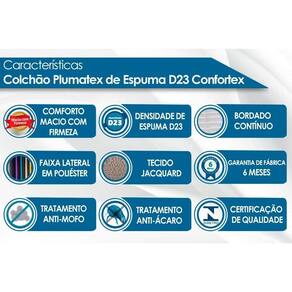 Densidade da Espuma do Colchão - D23 Nível de Firmeza do Colchão - Macio c/ Firmeza Peso Máximo Suportado do Colchão - 70 kg