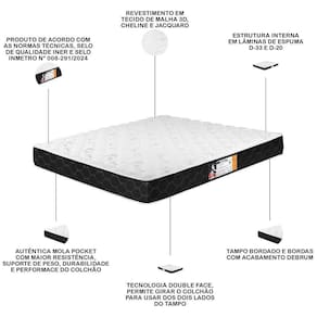 Colchão Casal Espuma D33 138x188x27cm Double Face Black - Preto