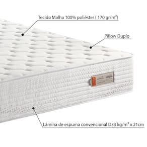 Ideal para você que deseja conforto e melhores noites de sono, o Colchão Casal Espuma D33 é a escolha perfeita. Um colchão para durar anos, feito com materiais de alta qualidade e resistência. Perfeito para você! Colchão de Espuma, Pillow Duplo, Tampo Tecido de malha com tratamento Anti-ácaro, Anti-fungo, e Anti-alérgico.