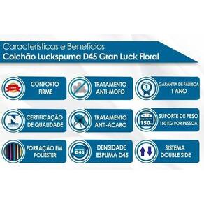 Imagens Meramente Ilustrativas. Não nos responsabilizamos pela montagem/instalação dos produtos. Todas as informações divulgadas são de responsabilidade exclusiva do fabricante/fornecedor. Tipo Tecido de Forração Revestimento: Bordado de Alta Qualidade | Tipo de Estrutura do Bloco de Espuma: D45 | Tipo de Conforto: Macio c/ Firmeza | Nossa Avaliação: Qualidade Boa | Peso Máximo Suportado: 110 kg | Tempo de Garantia: 12 meses | Certificados de Qualidade: Qualidade Aprovada | Tipo de Tecido de Revestimento da Faixa Lateral: Bordado | Cor do Tecido do Tampo: Claro Estampado | Tipo de Bordado do Tecido de Revestimento: Contínuo | Tecido com Tratamento: AntiÁcaro e AntiFungo | Modo de Utilização: Double Side | Cor do Tecido de Revestimento da Faixa Lateral: Clara Estampada | É infantil: Não | É eco-friendly: Sim | É antiácaros: Sim | É ortopédico: Sim | É kit: Não | Material: Tecido | Fonte do produto: N/A | Com moldura perimetral: Não | Com pegas laterais: Não | Número de registro/certificação INMETRO: N/A | Condição do item: Novo | Classificação da Cama: Casal | Produto: N/A | Cômodo Indicado: Multiuso | Código universal de produto (GTIN): 7898081209831 | Condição do Item: Novo | Link Site: https://www.costaricacolchoes.com.br/produtos.asp?produto=18430 | Numeral: 0 | Não se Aplica: N/A | Não Possui: Não | Linha/Modelo: Luckspuma | Cor Cnova: Blush | Cor Meli: Ciano | Contatos Sac Fábrica: luckspuma@luckspuma.com.br | Categoria Trilha: Colchão> Colchão de Espuma D45 | Categoria - Sub: Colchão de Espuma D45 | Categoria - Pai: Colchão | Comprimento Embalagem: 188.00 | Largura Embalagem: 138.00 | Altura Embalagem: 20.00 | Peso: 21.23 Kg | Kit: 0 | Peso Real Kg: 21.23 | Peso Cubado: 130.00 | Volumes: 1 | M3: 0.52 | Comprimento/Profundidade: 188 cm | Largura: 138 cm | Altura: 20 cm | Tamanho Montado: Larg:138.00 x Comp/Prof:188.00 x Alt: 20.00 | Comprimento/Profundidade Montado: 188.00 | Largura Montado: 138.00 | Altura Montado: 20.00 | Tamanho Cama Colchão: Casal | Data Cadastro: 2023-7-1 17:35:3 | Sigla Estoque: 2 | Marca: Luckspuma