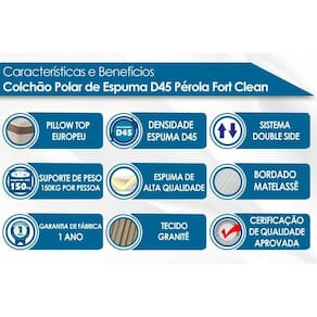 Colchão Casal Espuma D45 Pérola Euro Pillow Grey (138x188x24) - Polar