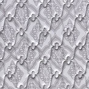 Tecido Tampo: Malha branca com detalhes cinza