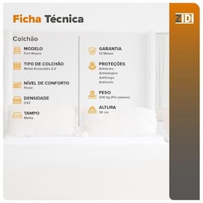 Colchão Casal Fort Wayne Molas Ensacadas Suporte 200kg Chumbo Colchao Casal Molas Ensacadas Suporte 200 kg Fort Wayne Pillow Inn Detalhes Do COLCHAO: