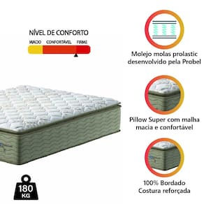 REVESTIMENTO SUPERIOR: Pillow macio, tecido em malha branca que permite melhor ventilação, possui pillow super que é uma camada extra de conforto.