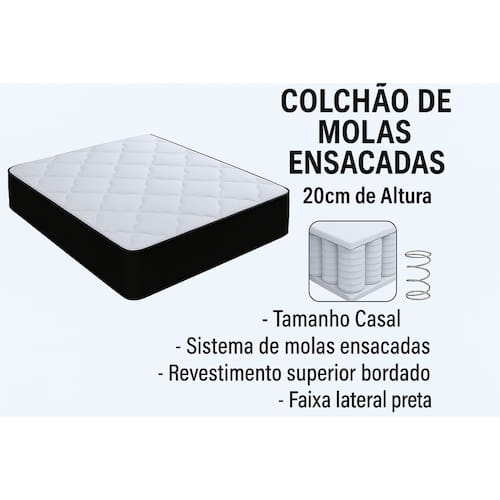 O Colchão tem sua estrutura composta por molas ensacadas individualmente, proporcionando conforto e suporte necessário para a parte lombar da coluna e é altamente resistente e confortável, proporcionando melhor sustentação e durabilidade ao produto, o tampo é bordado, que entrega uma camada extra de conforto. Seu revestimento é com tratamento antialérgico e antiácaro. Esse é o colchão ideal para toda a família.