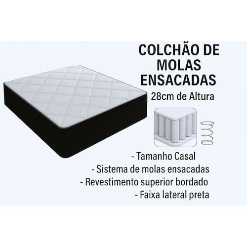 O Colchão tem sua estrutura composta por molas ensacadas individualmente, proporcionando conforto e suporte necessário para a parte lombar da coluna e é altamente resistente e confortável, proporcionando melhor sustentação e durabilidade ao produto, o tampo é bordado, que entrega uma camada extra de conforto. Seu revestimento é com tratamento antialérgico e antiácaro. Esse é o colchão ideal para toda a família.
