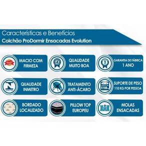 Especificações Técnicas Colchão:- Marca: Probel;- Tipo de Mola: Ensacadas;- Proteções: Antiácaro - Antialérgico - Antifungo - Antimofo;- Acabamento: Bordado em Matelassê;- Matéria prima: Espuma/Molas/Tecido;- Tipo de conforto: Intermediário;- Peso máximo recomendado: até 150kg (por pessoa);- Garantia: 12 meses na estrutura e 3 meses no tecido;- Dimensões do produto (largura x comprimento x altura) Casal: 138x188x32cm Marca: Colchão Casal Ean: 7899486360950