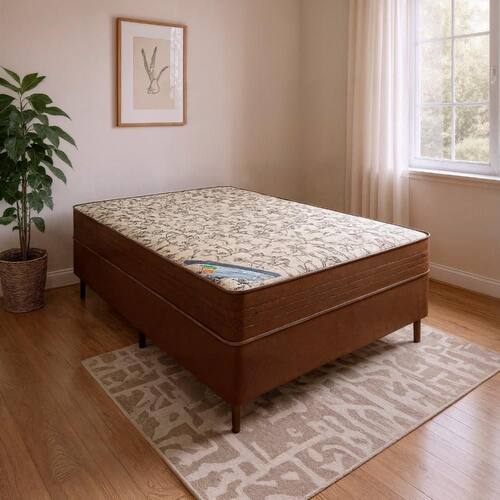 O aspecto ou proporção do colchão vai variar de acordo com o tamanho escolhido (Solteiro, Casal, Queen, King). A foto serve apenas de referência para visualização de acabamento e detalhes estéticos do produto.