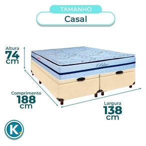Suporte para até 150kg, ideal para quem busca firmeza e resistência Base baú Casal com 42cm de altura e amplo espaço interno para organização