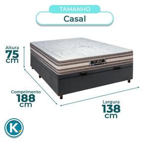 Suporte de até 120kg por pessoa, ideal para uso diário com firmeza equilibrada Base baú casal com 42cm de altura e amplo espaço interno para organização